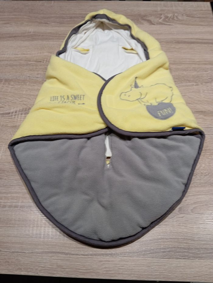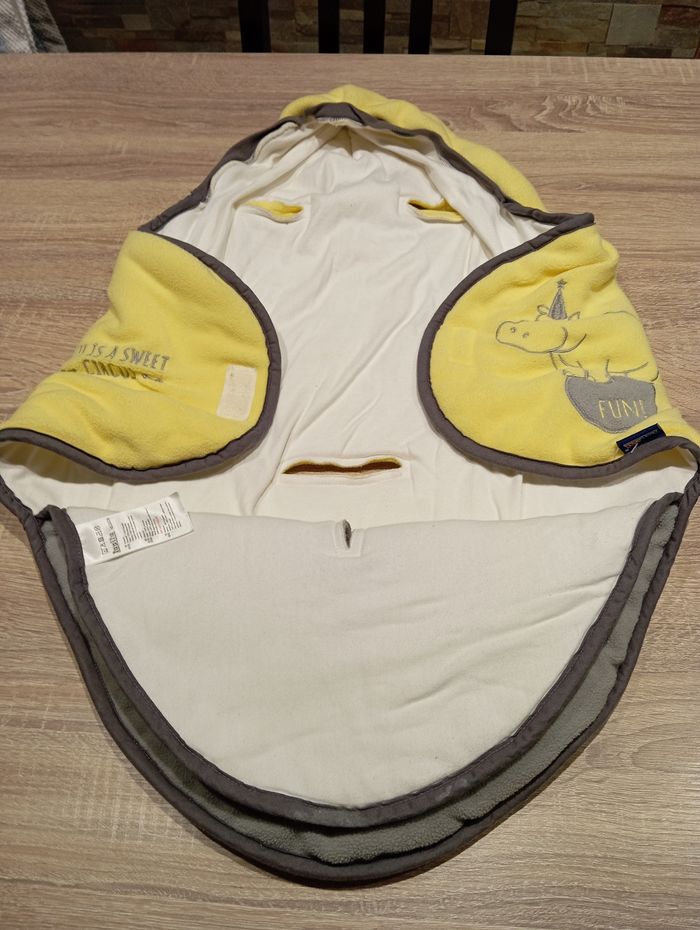 Nid d'ange bébé 0/6 mois pour cosy et poussette. Je m'en suis beaucoup servi pour mon 1er car il est né en décembre mais pour ma seconde qui est née en mai, elle a 6 mois et elle est trop grande. C'est bien pratique pour les garder au chaud en hiver.