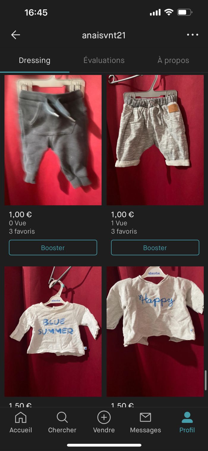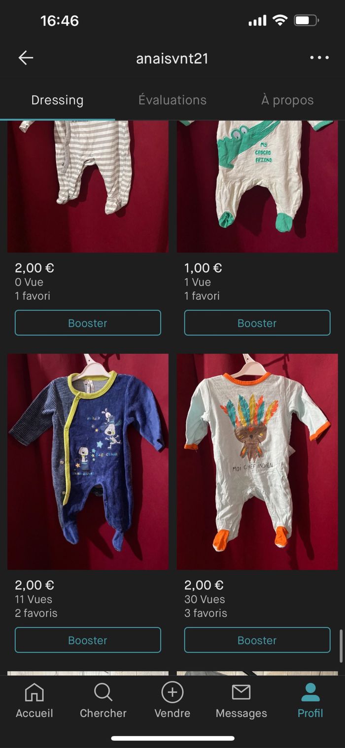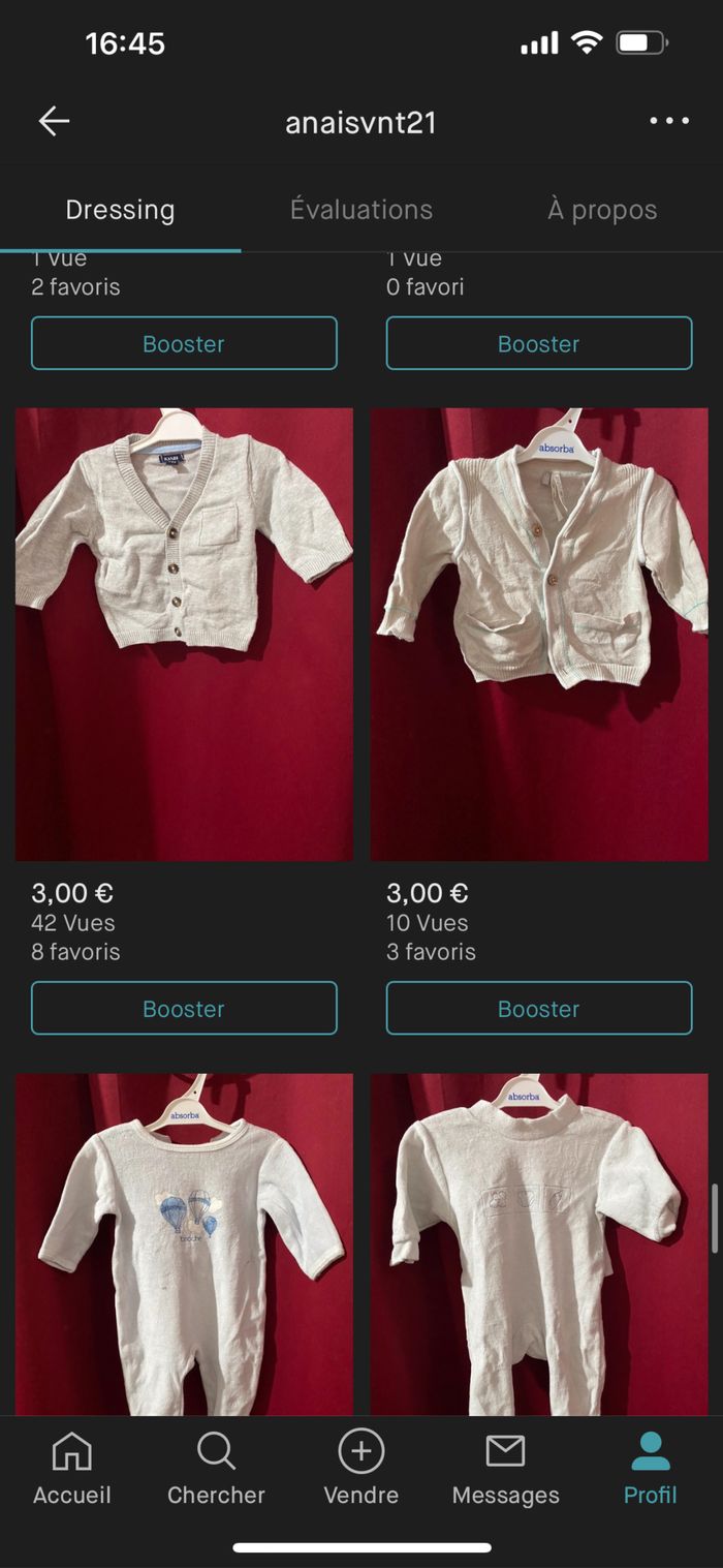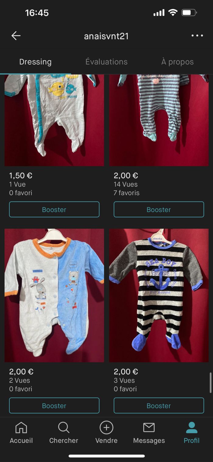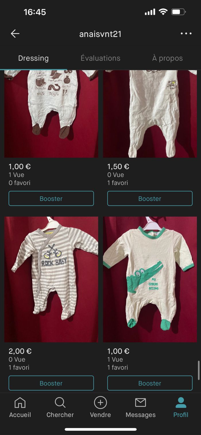 Vend lot de vêtements bébé garçon 1 mois. Bonne état général, possibilité de choix d’un seul article