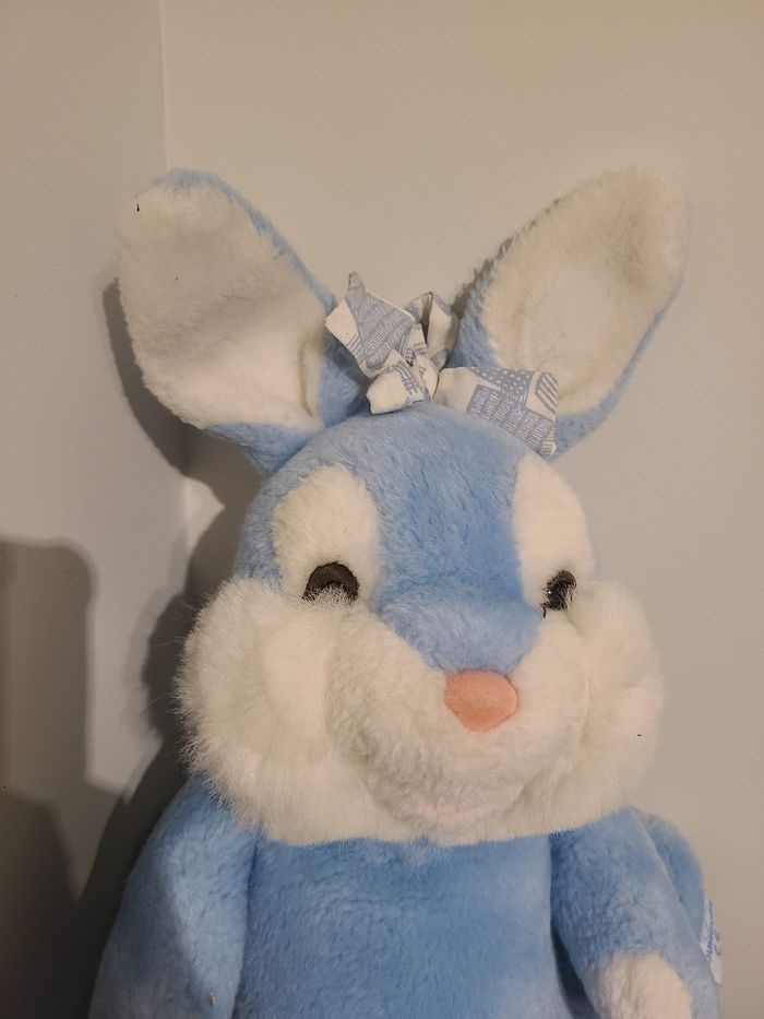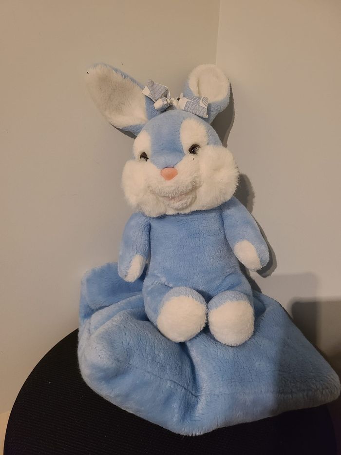 lapin range pyjama nounours vintage ancien peluche lapin bleu 83