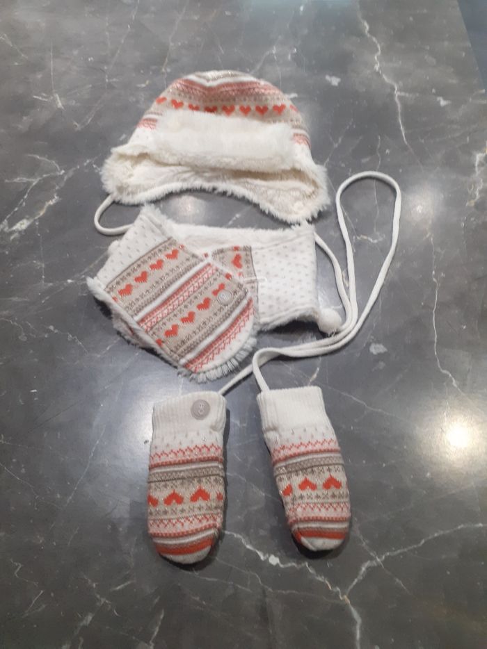 Vends bonnet écharpe et gants en très bonne état de 6 mois à 18 mois