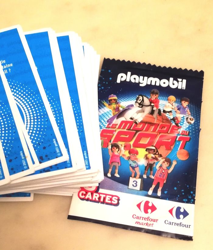 Carte playmobil carrefour 2021 Collectionner les 96 cartes de la collection Playmobil le monde du sport - 2021- pas d’envoi moins de 4 cartes soit 2€ 0.50cts la carte Manquant sur les 96 cartes: 15 27 33 62 64 74 Demandez celles qui vous manque