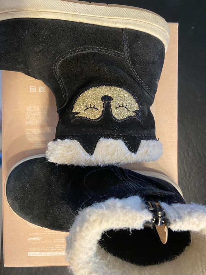 Bottines Geox noires avec détail dore, taille 24, porté l’hiver dernier. Un peu abîmé sur l’avant mais en bon état