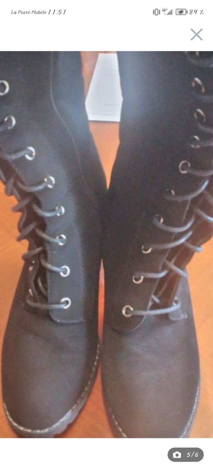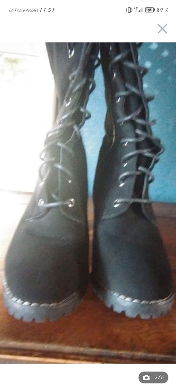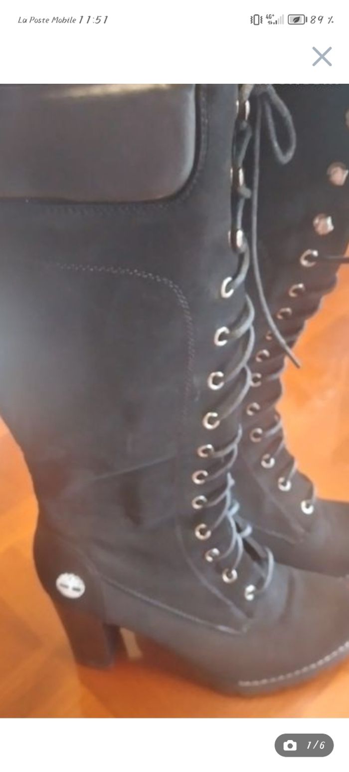 Jolie paire de botte hautes de marque Timberland. Couleur noire . Pointure 41. Comme neuve, paire portée une seule fois car je ne doit plus mettre de talons.