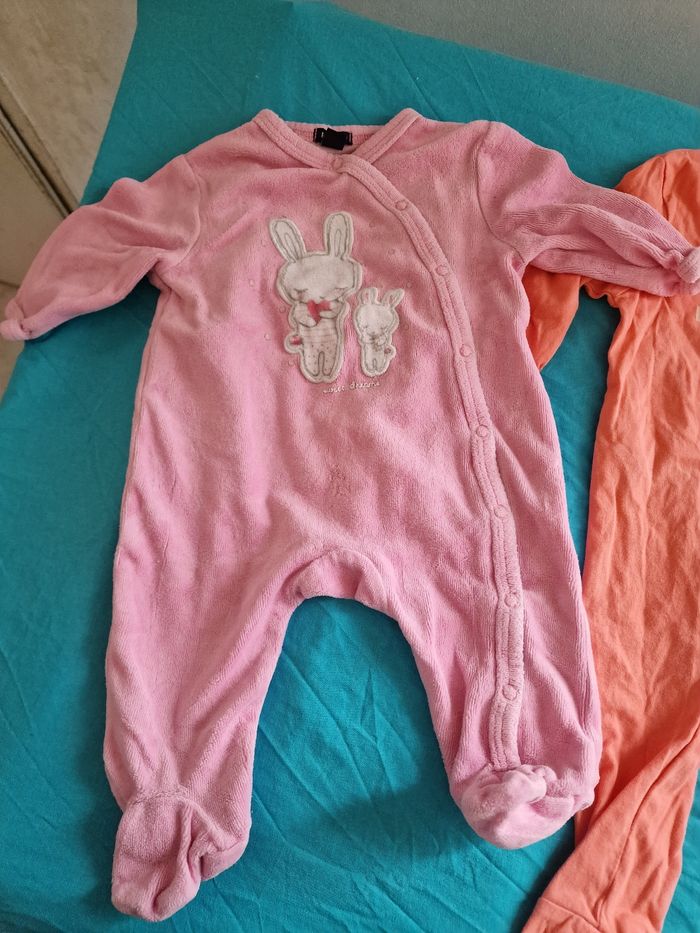 4 pyjamas , 3 épais et 1 fin . Le pyjama blanc et une taille 1 mois