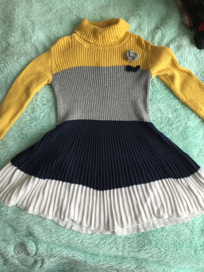 très belle robe qui tourne taille 2 ans mais taille plus 3-4 ans je trouve ( n’hésitez pas à demander les mesures ) en TBE à part une micro tache en bas de la robe qui ne voit presque pas mais je préfère la signaler CAISSE 4