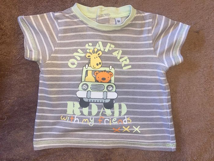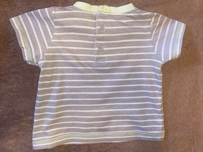 Joli tshirt rayé gris et vert clair 🍃 => État : Très bon état => Marque : Sucre d’Orge => Taille : 6 mois => Composition : 60% coton 40 % polyester Lavé et repassé 🍃 Envoi rapide et soigné 🍃 N’hésitez pas à me contacter pour d’éventuelles questions 😊