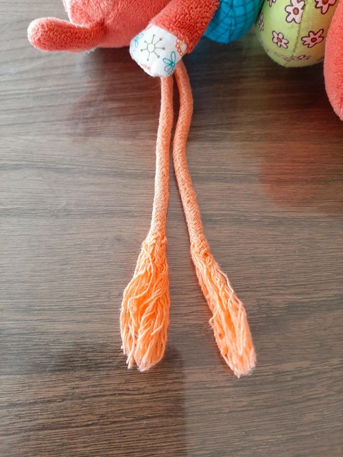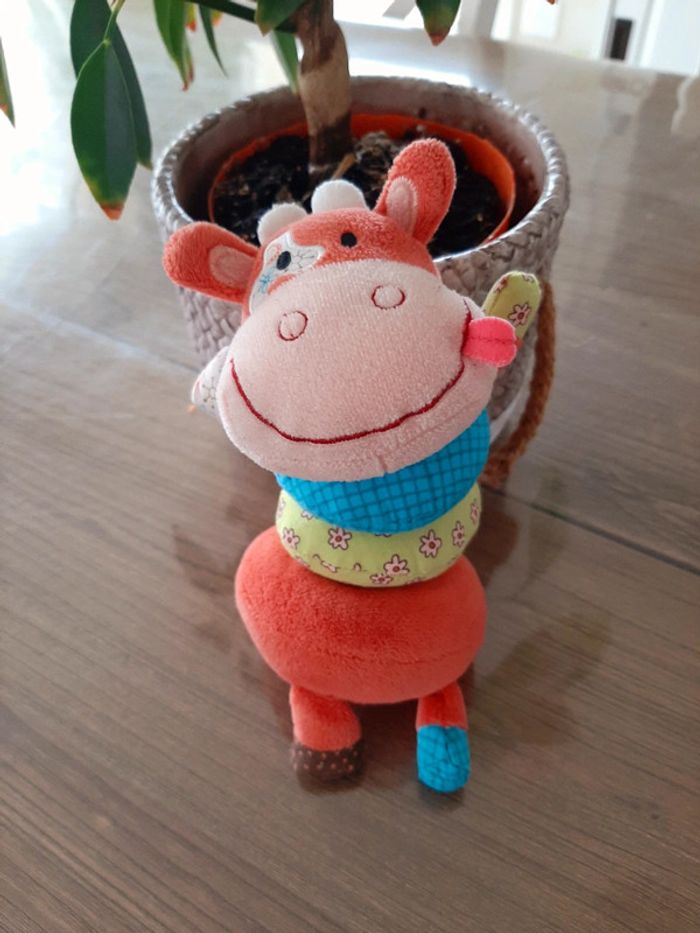 Ce hochet vibrant Vicky Vache Dansante deviendra vite l'ami de bébé. En velours ras, pour un toucher velouté S'étire et vibre Un lacet permet de nouer le hochet au barreaux du lit de bébé, du transat, ou sur le parc par exemple Papier bruissant présent dans le dernier anneau Mesure 15 cm et 19 cm lorsqu'il est étiré Bon état ; les lacets sont usés (voir photo) #lilliputienspeluche #lilliputiens #vickyvache #noel2023 #ciya76jouets