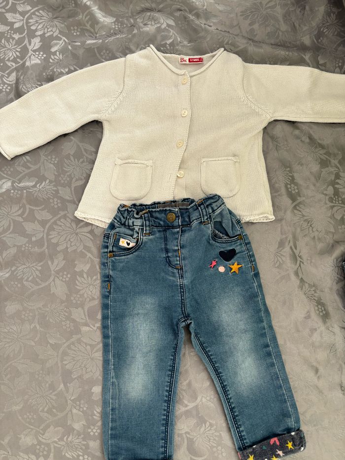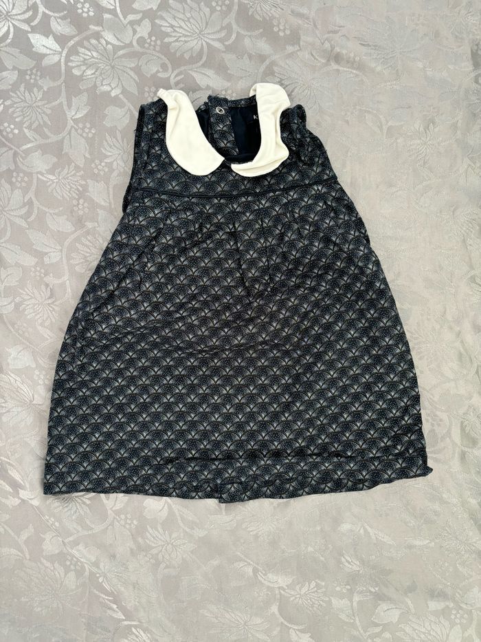 Lot de 12 mois 1 jupe cdp, 2 robes jean obaibi, 1 robe kiabi, 1 gilet dpam et 1 pantalon orchestra. Bon état.