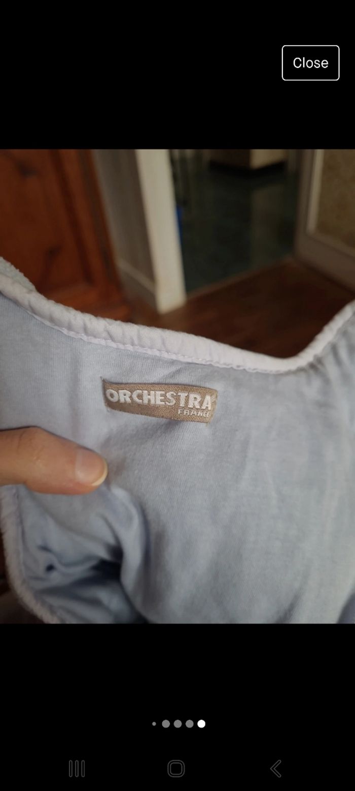 Gigoteuse orchestra. Longueur total 100 cm. Avec les boutos il est possible régler la longueur, faire plus petit. Tiens chaud. Très bon état