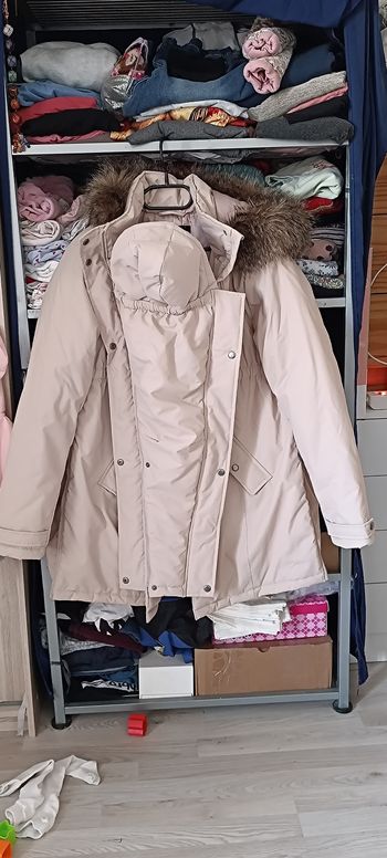 Manteau de portage avec ouverture devant et derrière. Inserts en plus. Peut servir en manteau de portage et de grossesse En softshell Taille XL mais taille plutôt comme un L. Marque lennylamb