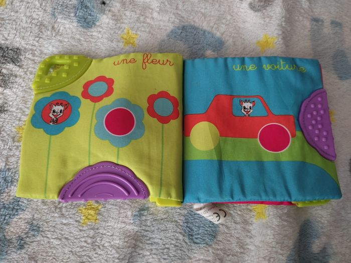 Livre souple en tissu Sophie la girafe. Sensorielle . Passer a la machine a laver avant la vente en très bonne état