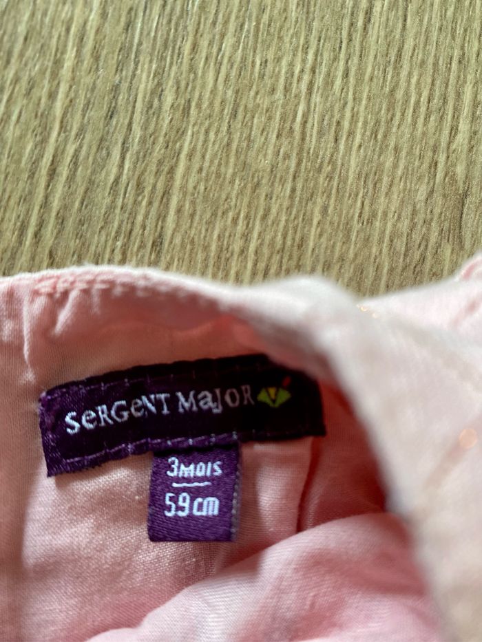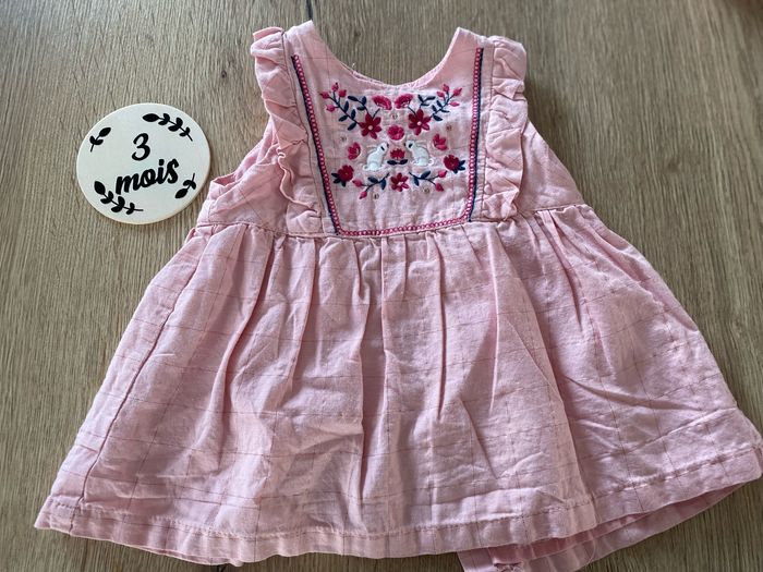 Robe Sergent major Coloris rose , orné de petits lapins Taille 3 mois En parfait état Maison non fumeur N’hésitez pas à faire des lots pour obtenir des remIses