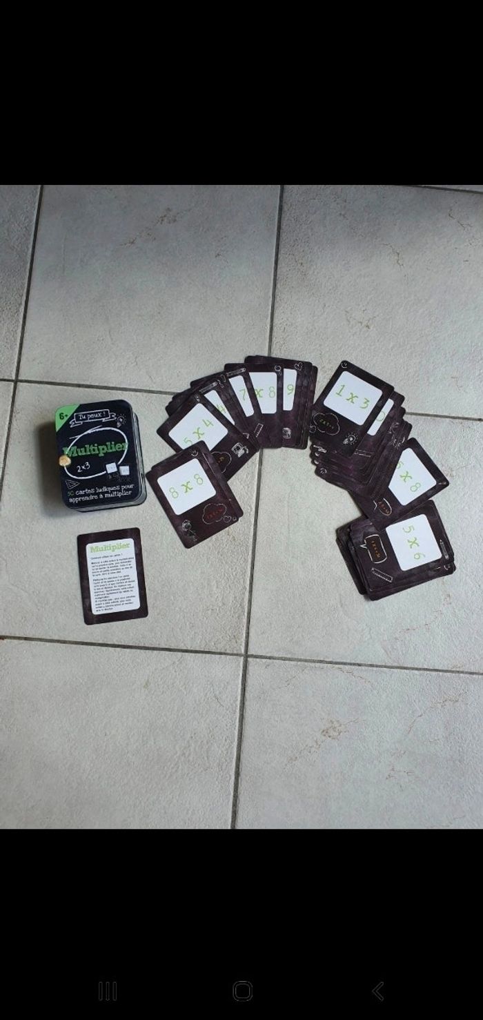 Jeu pour apprendre les multiplications. A partir de 6 ans Les cartes sont en très bon état. Juste une marque sur la boîte métallique.