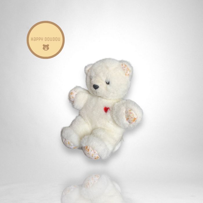 Peluche Doudou Ours blanc avec cœur rouge A632