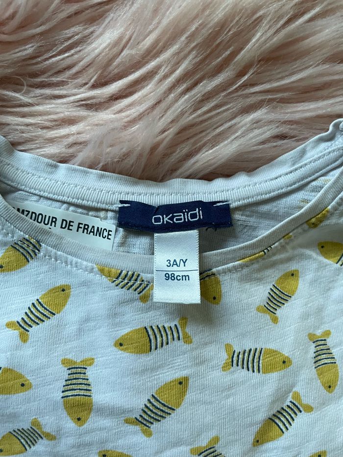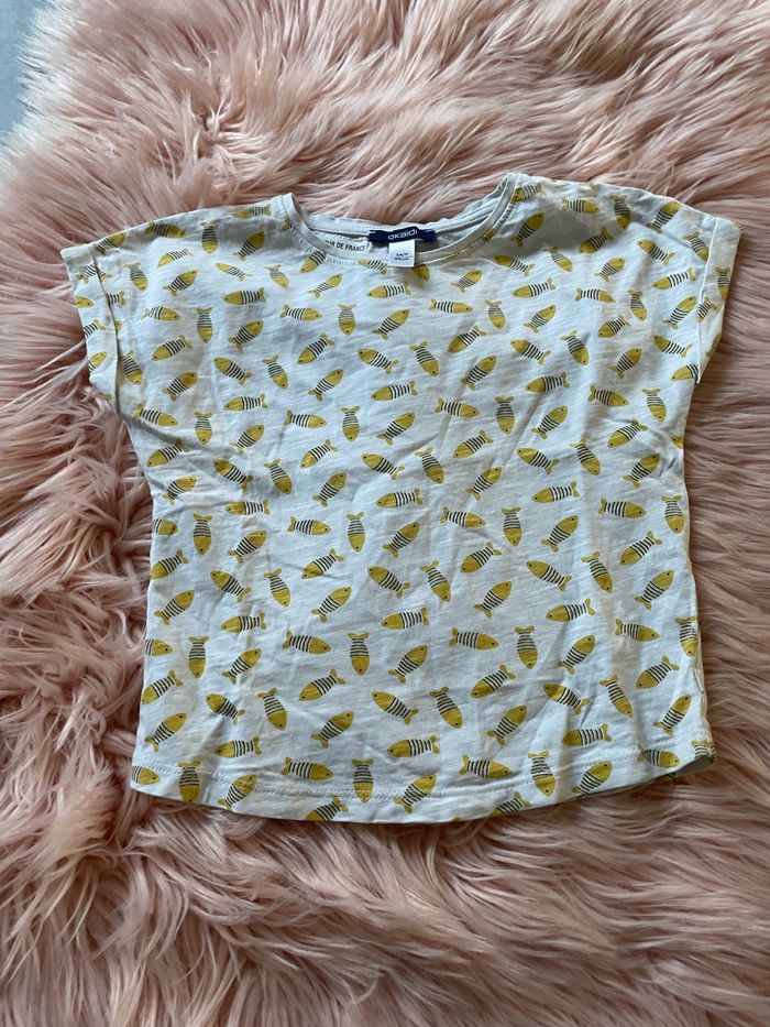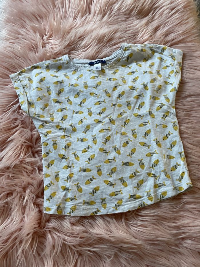 Jolie petit t-shirt blanc avec des petits poissons jaune. Taille 3 ans de la marque Okaïdi. Envoie dès le lendemain de l'achat. 💎