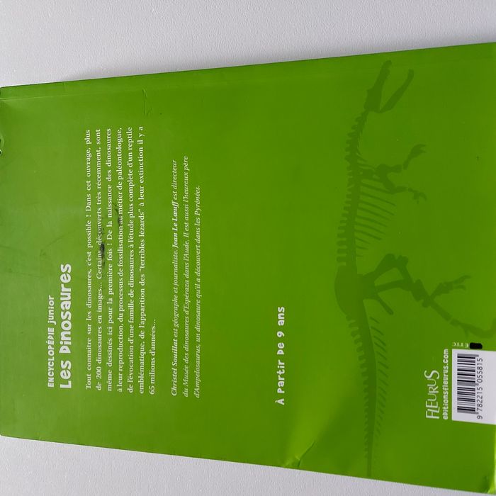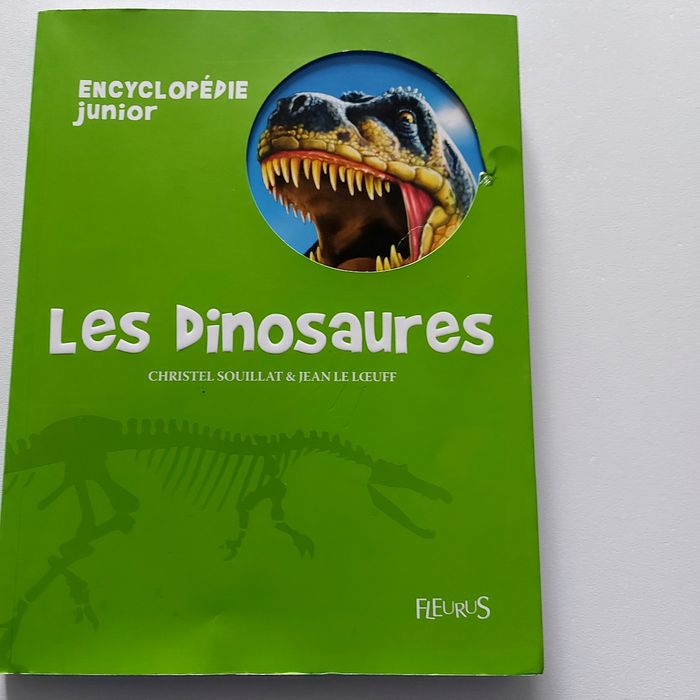 Encyclopedie sur les différents dinausores Explication détaillé la vie des differents dinausores: chasse, lieu de vie... Protection souple Petit defaut sur l avant de la couverture