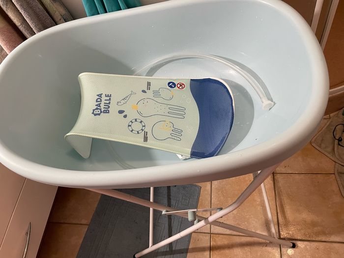 Je vends ce lot de baignoire de ma fille - acheté en Août 2023 - je m’en sépare car nous déménageons dans un logement avec baignoire. Baignoire + Pied de baignoire + Tuyau de vidange + hamac de bain Tout de marque badabulle en excellent état. N’hésitez pas si vous avez des questions. À’ venir chercher sur place