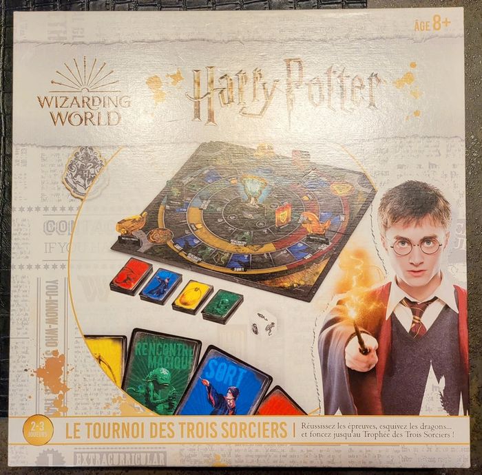 Jeux de société Harry Potter sorcier Warner Bros Cartamundi Harry Potter Course à la Coupe des Trois Sorciers Le jeu est un très bon état il est au prix de 15 € me contacter pour plus de renseignements Règles du jeu : Dans ce jeu, les joueurs incarnent des sorciers de Poudlard et participent au célèbre Tournoi des Trois Sorciers. Le but est d'être le premier à atteindre la Coupe des Trois Sorciers en traversant différentes épreuves. Chaque joueur commence par choisir un personnage parmi les célèbres sorciers de l'univers Harry Potter. Ensuite, à leur tour, les joueurs lancent le dé et avancent leur pion sur le plateau de jeu. Ils doivent relever des défis et résoudre des énigmes pour progresser. Certains défis peuvent être des duels de sorts contre d'autres joueurs, tandis que d'autres peuvent être des épreuves de courage ou d'intelligence. Le jeu est rempli de rebondissements et de surprises, avec des cartes spéciales qui peuvent aider ou entraver les joueurs. Le premier joueur à atteindre la Coupe des Trois Sorciers remporte la partie !