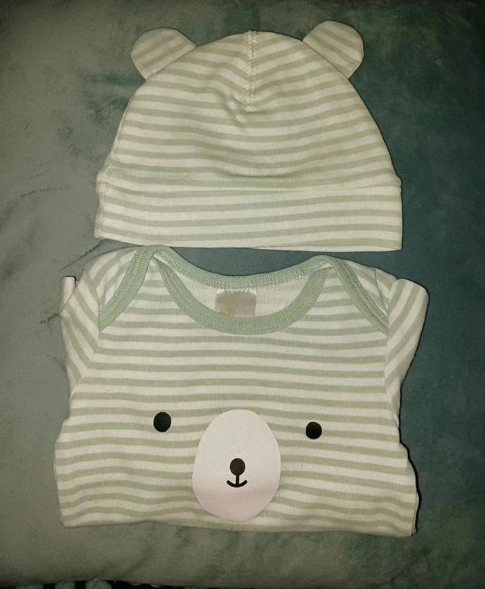 Ensemble h&m body manches longues et bonnet 1/2 mois