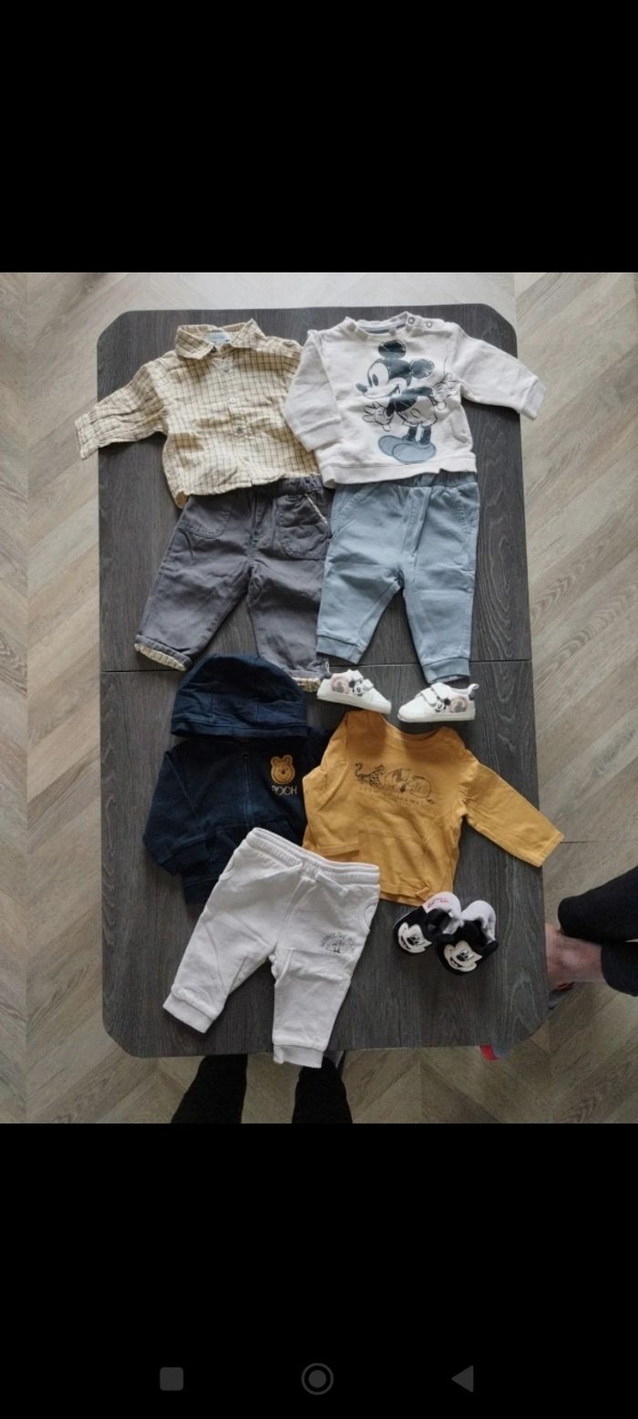 Lot ensemble garçon de 6 mois. 3 ensemble. 1 paires de baskets assortie 1 paires de chaussons 1 veste très chaude pour l'hiver