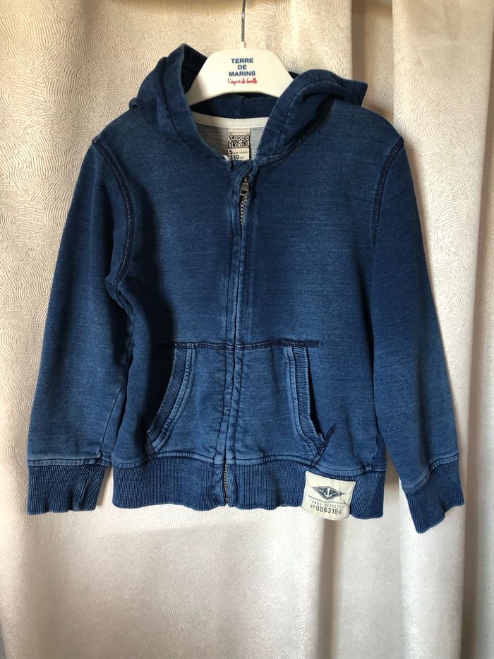 Gilet bleu à capuche Aspect jeans bleu foncé délavé Taille 5 ans 110 cm 100% coton tape à l’œil
