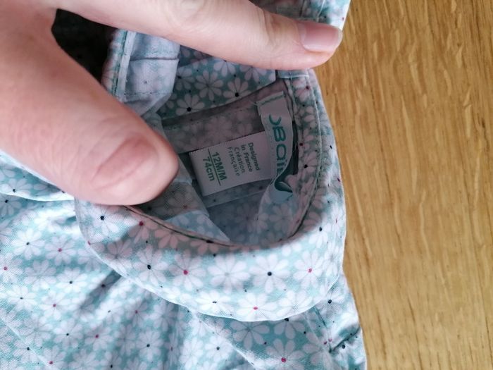 Blouse bleu ciel avec motif fleuri taille 12 mois marque obaibi
