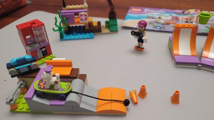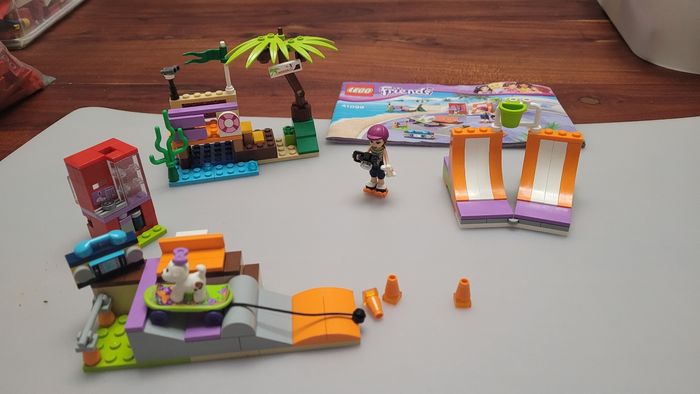 Jeu lego friends skate Park, chien skate, fille sur patins, distributeur boisson avec canette et pièce, 3 rampes Complet Notice Sans boîte #lego #lego friends #noel2023
