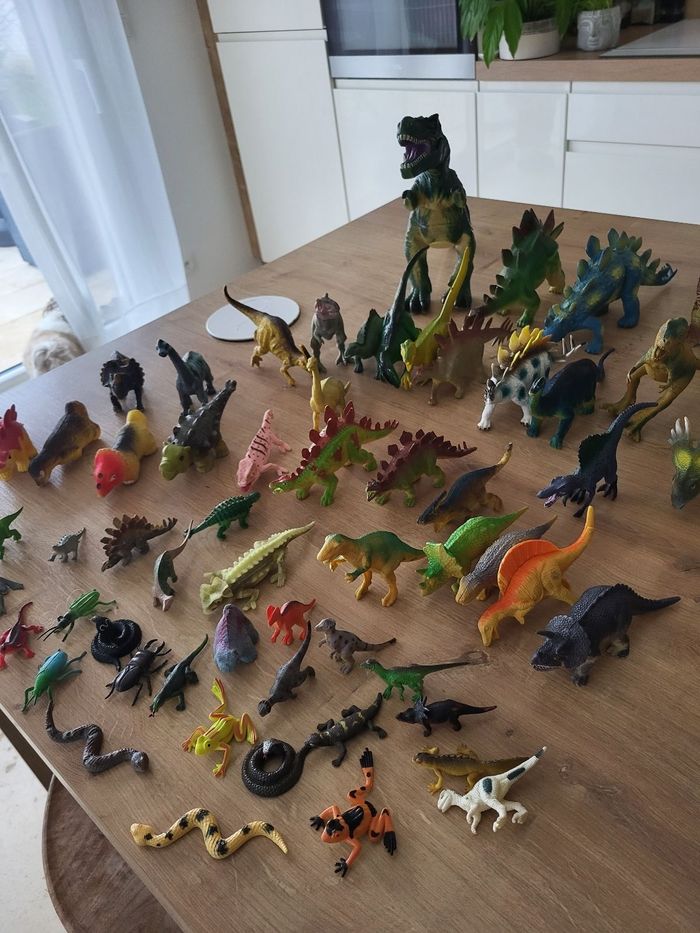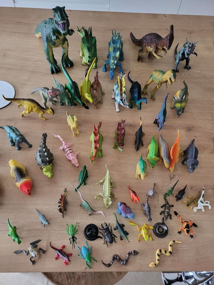 Lot de dinosaures reptiles insectes... 59 figurines Le plus grand Hauteur 23 cm longueur 38