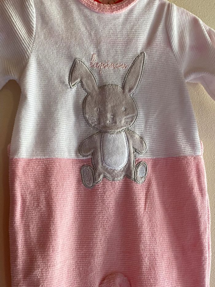 Pyjama une pièce velours 3 mois Fermeture derrière #ibiza64140fille3mois #ibiza64140fillepyjamas3mois