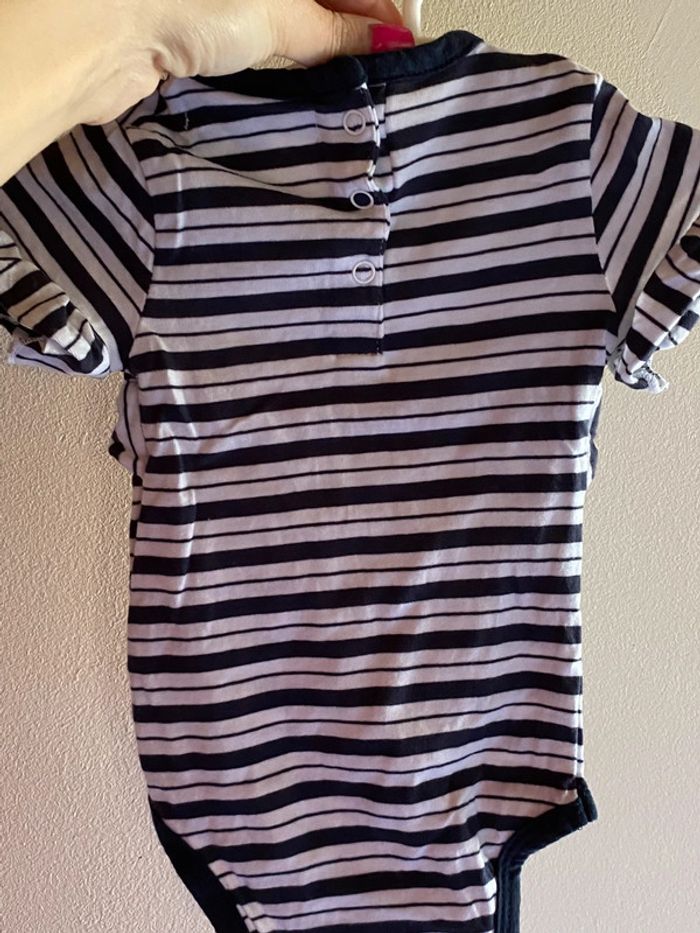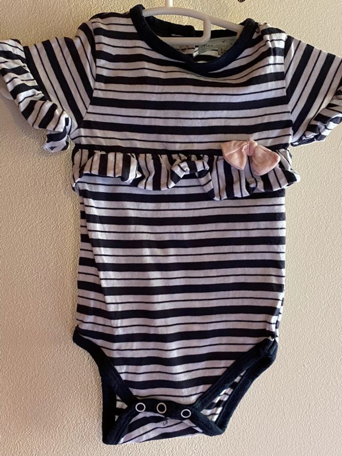 Body rayures avec noeud rose 3 mois manches courtes #ibiza64140fille3mois #ibiza64140filleteeshirts3mois