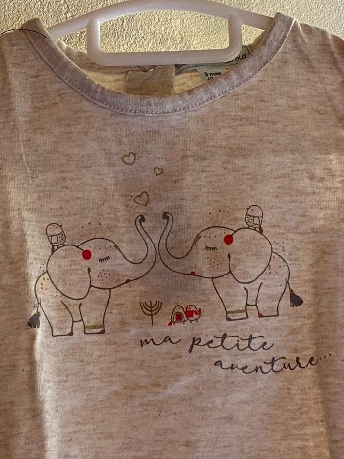 Tee-shirts manches courtes beiges motifs éléphants 3 mois #ibiza64140fille3mois #ibiza64140filleteeshirts3mois