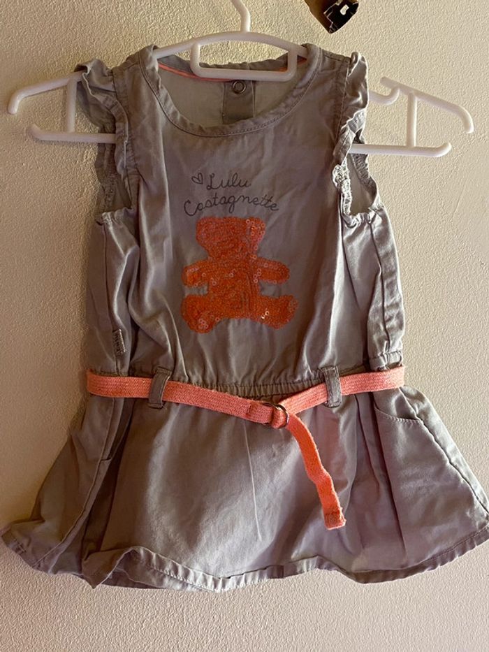 Robe beige lulu castagnette 3 mois Volante et ceinture #ibiza64140fille3mois #ibiza64140fillerobes3mois
