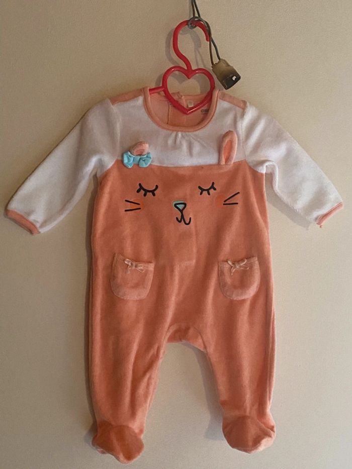 Pyjama une piece motif chat Fermeture pression derrière 3 mois #ibiza64140fille3mois #ibiza64140fillepyjamas3mois