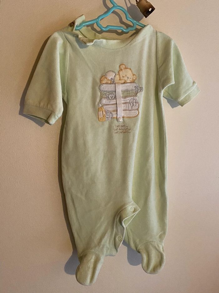 Pyjama velours une pièce vert anis #ibiza64140garcon3mois #ibiza64140garconpyjamas3mois