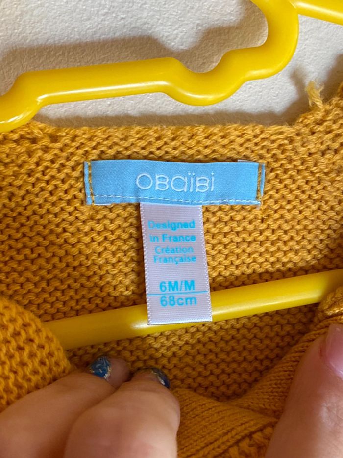 Gilet deux boutons épais grosse maille moutarde 6 mois #ibiza64140fille6mois #ibiza64140fillevestes6mois