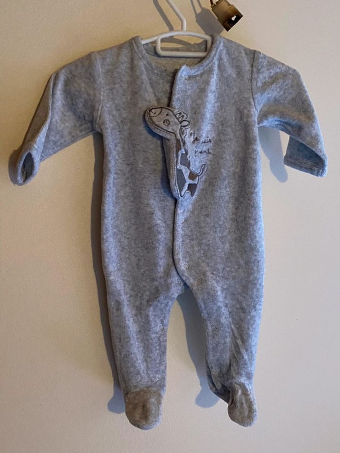 Pyjama une pièce velours 1 mois Ouverture devant Motif girafe #ibiza64140garcon1mois #ibiza64140garconpyjamas1mois