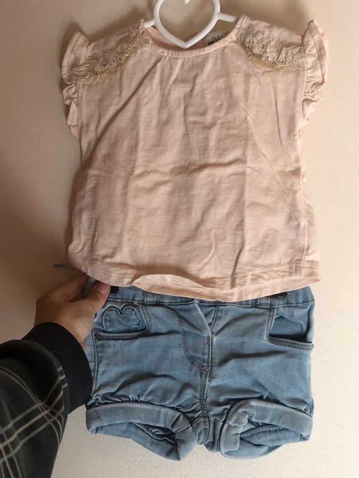 ensemble tee-shirts et short en jean 12 mois TAO #ibiza64140fille12mois #ibiza64140filleensembles12mois