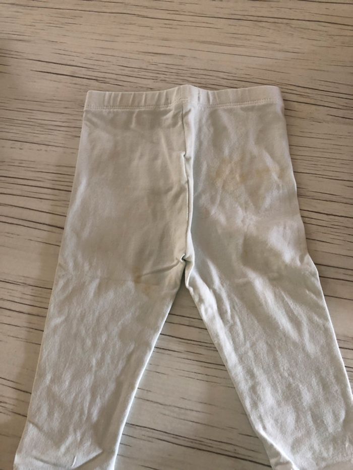 lot deux leggings le blanc à des tâches 12 mois obaibi et kimbala
