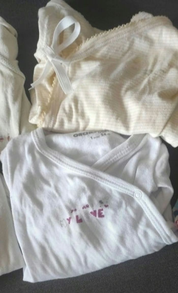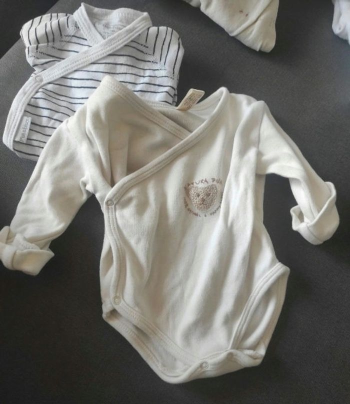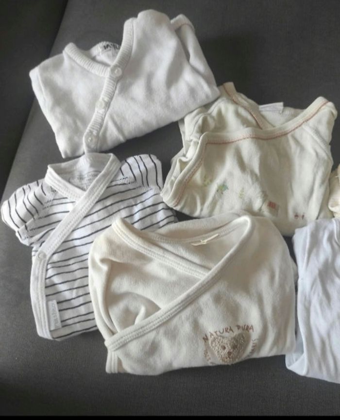 Lot de 5 bodies bébé + 1 gilet blanc 1 bodie légèrement tâché voir photo