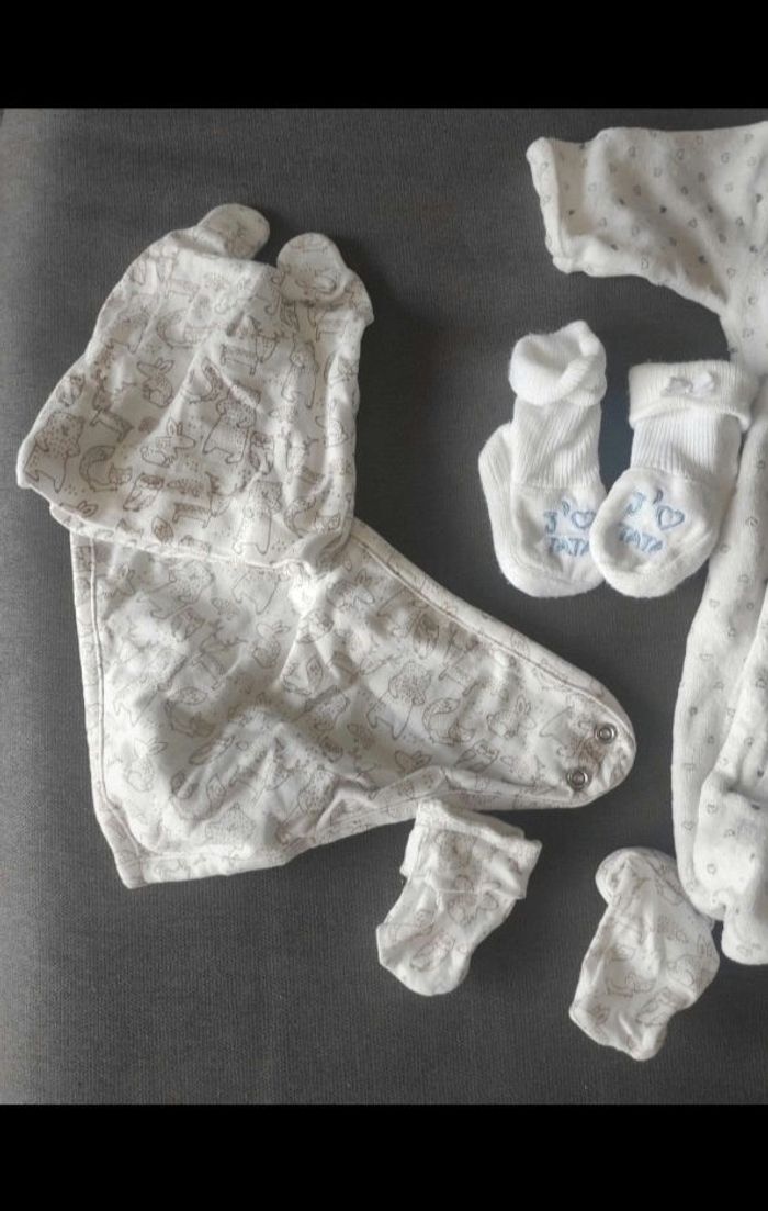 Vêtements naissance bébé 2 pyjamas 1 bodie manches longues 1 kit naissance bonnet moufles bavoir 1 paires de chaussettes