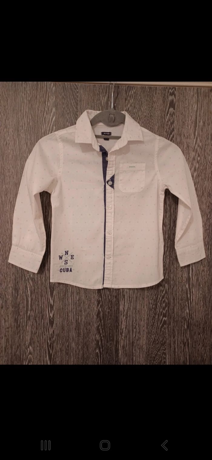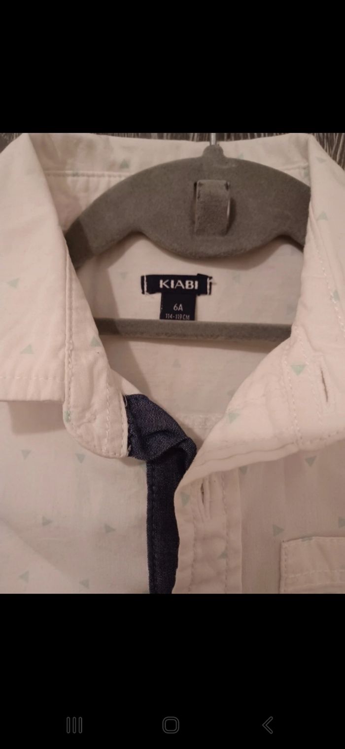 Bonjour ✴Je vend cette chemise en très bon état ✴Effet bien habillé ✴Taille 6ans/114-119cm ✴Imprimé losange vert anis ✴Couleur blanc et vert anis ✴Manches longues ✴Avec petite poche sur le devant ✴100% coton