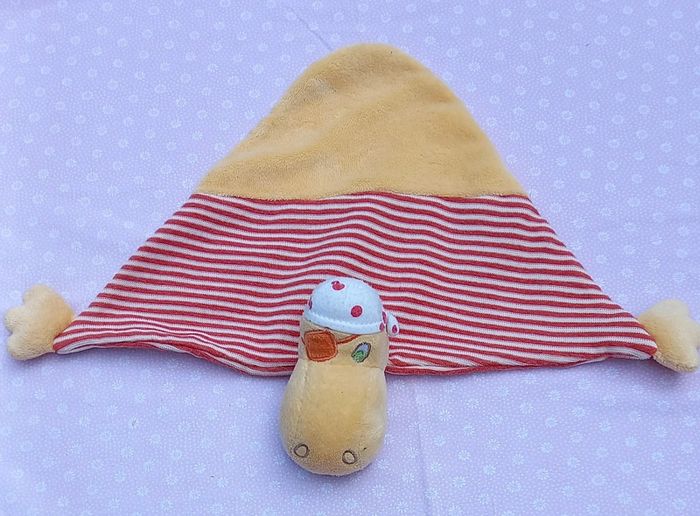 Doudou plat triangle hippopotame pirate Ernesto- carré blanc - photo numéro 1