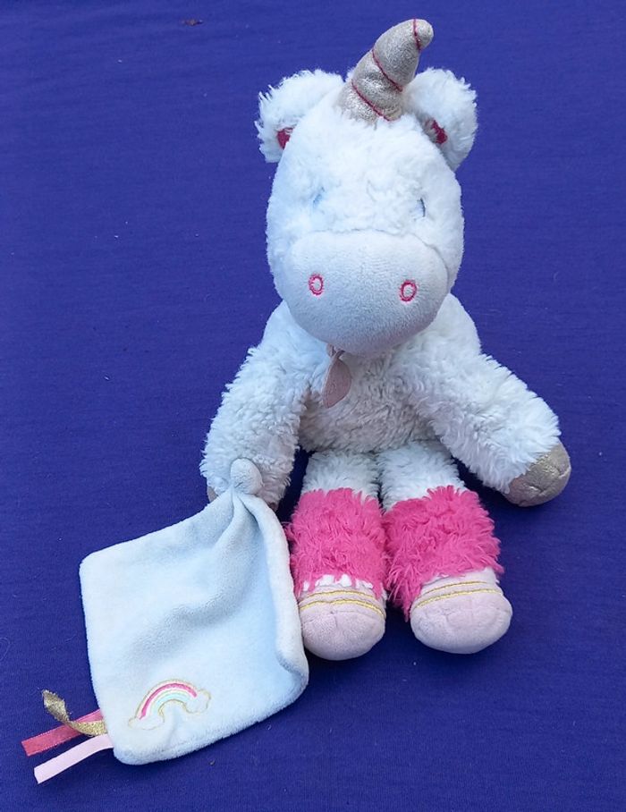 Doudou peluche Licorne avec mouchoir arc en ciel - Baby Nat