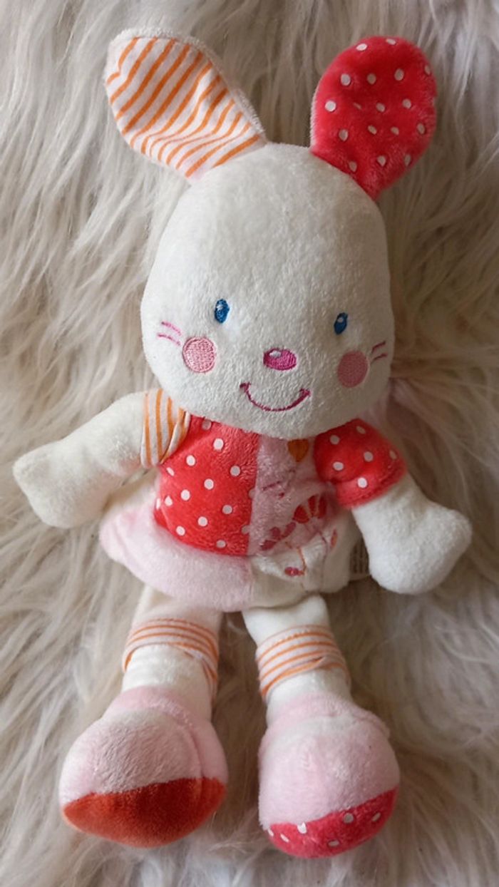 Doudou peluche lapin - Robe rose et rouge à pois - Nicotoy - photo numéro 1