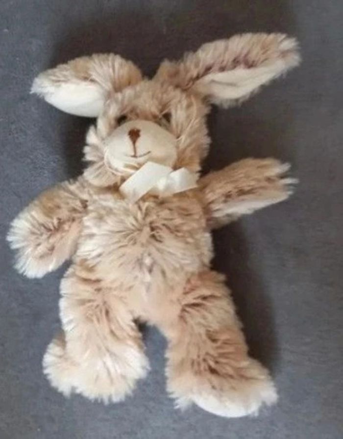Doudou -peluche lapin à poils de couleur crème - photo numéro 1