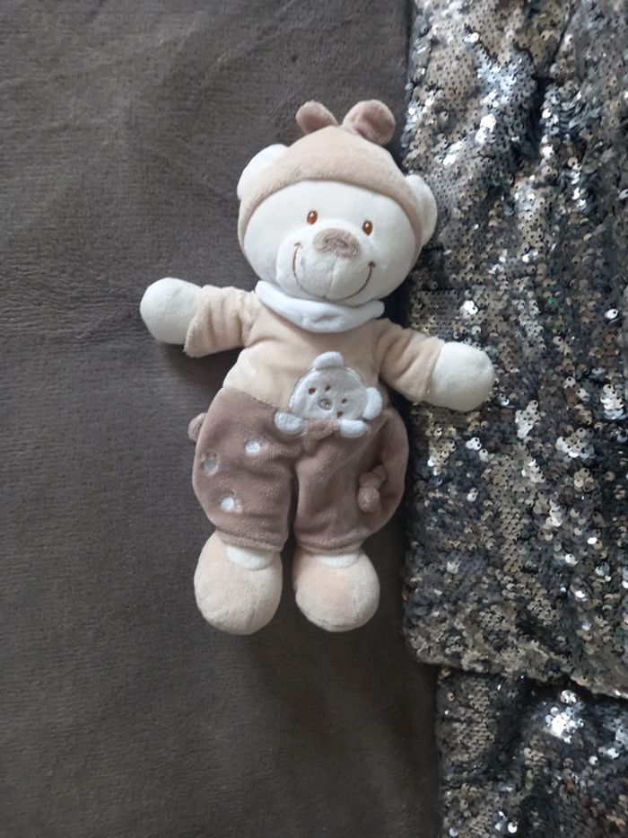 Doudou peluche ours beige 2 tons Nicotoy - photo numéro 1