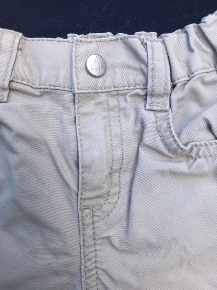 Pantalon de couleur beige Armani se ferme avec un bouton avec initial A de Armani Au bas motif Matiere : 100 % coton Taille : 6 mois En parfait état