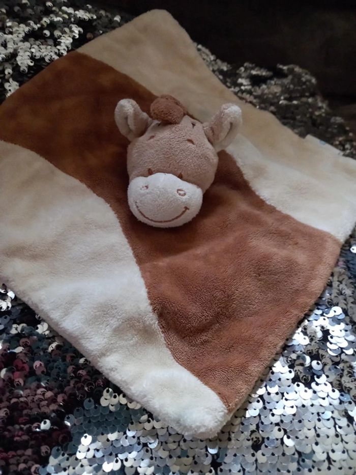 Doudou carré beige et marron avec Cheval brun Marque : Babylove En parfait état
