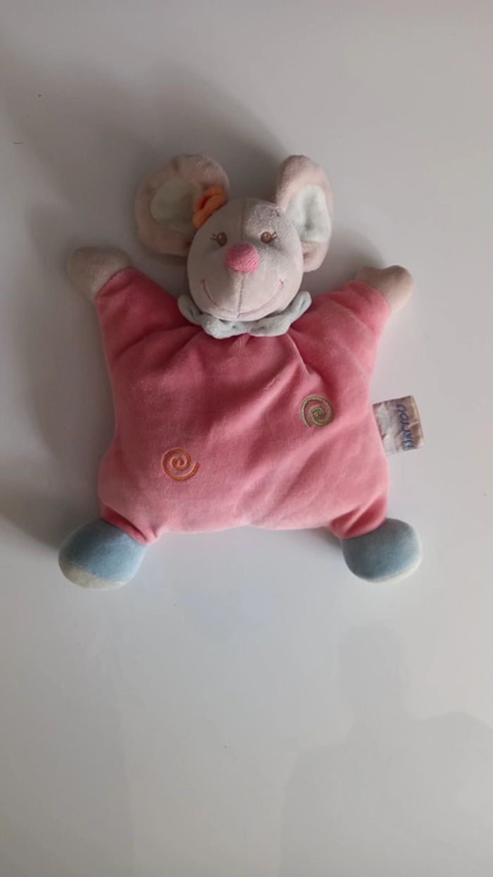 Doudou Souris de couleurs rose avec bruit hochet Marque : Nattou Très bon état