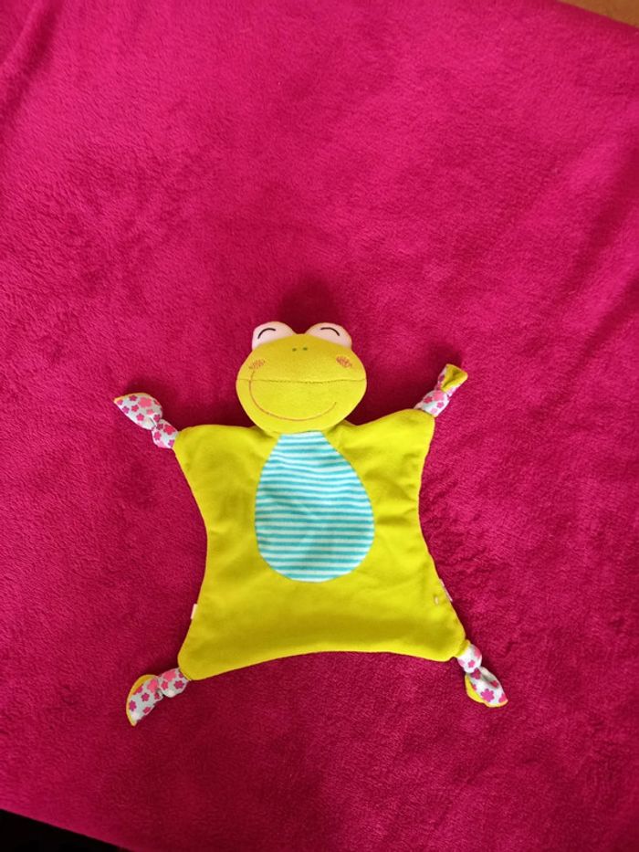Doudou hochet Grenouille verte avec nœuds dans les coins En parfait état